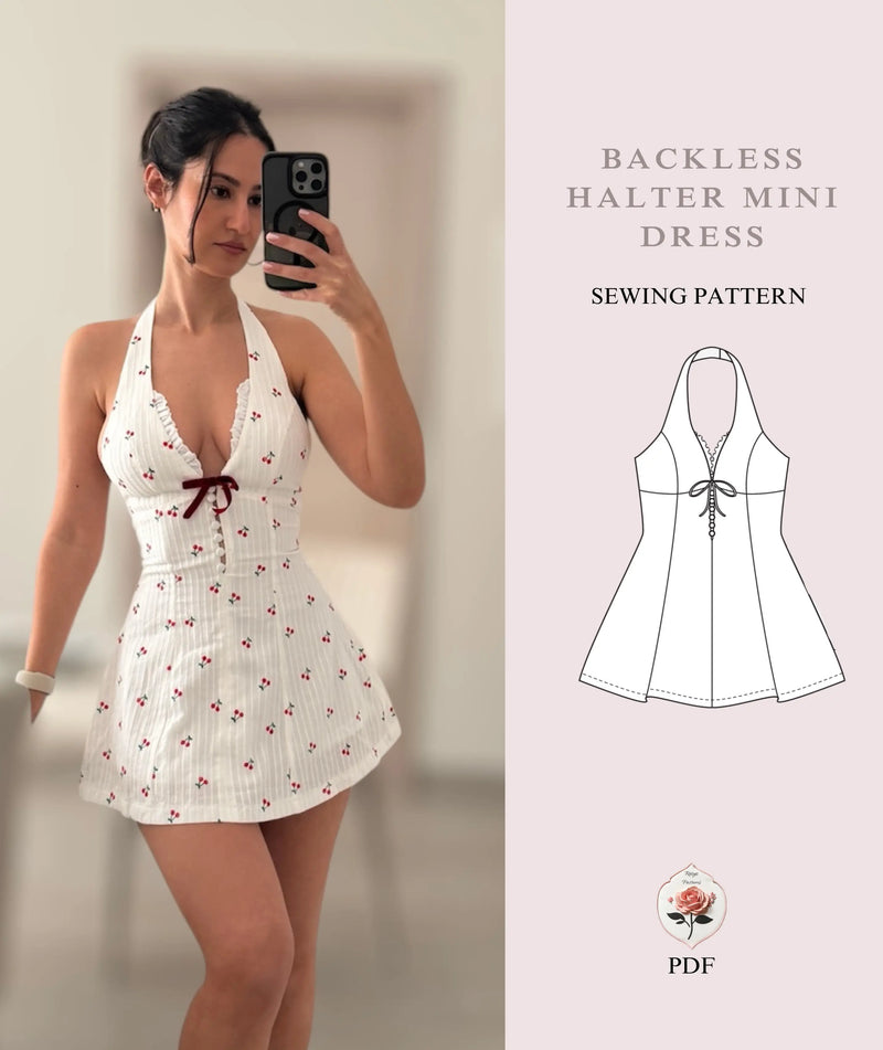 Vintage Open Back Mini Halter Dress Sewing Pattern PDF